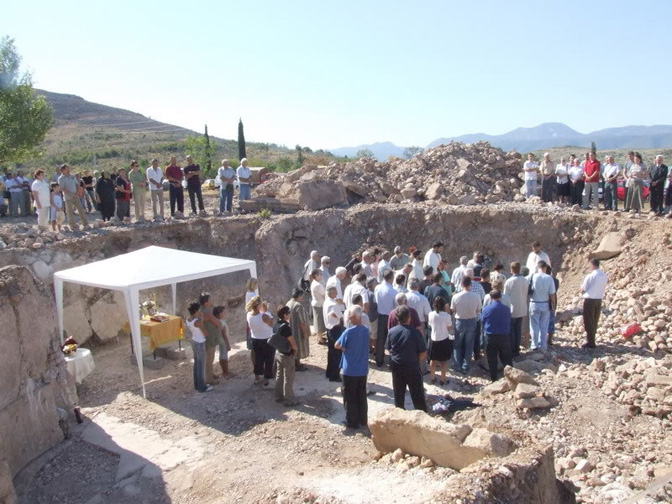 Место где је минирана костурница: „Кости и зуби су се утиснули у камен темеља цркве, а камен, цигле и малтер летели су више од 150 метара“ (Потпис и фото: Стојан Ђорђевић)