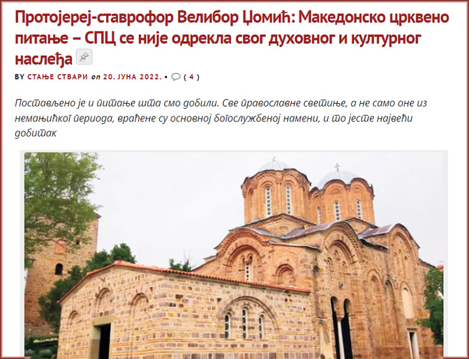 Право питање у ствари је чију сте политику према СПЦ и Старој Србији наставили, пита протојереја-ставрофора В. Џомића коментатор с надимком Једино питање на „Стању ствари“