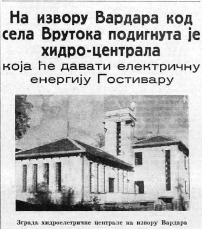 На извору Вардара код Врутока подигнута је и пуштена у рад електрична централа 15. новембра 1936. године, која је давала прву струју Гостивару и околини. Централа је коштала преко 1,2 милиона динара, а имала је погонску снагу воде од 240 коњских снага. Данас овај податак у Маћедонији готово да нико и не помиње, свесно или не, тек „светлост“ се очигледно појавила тек после 1945. године. Док некоме не смркне, другоме не сване. И тако до данас.