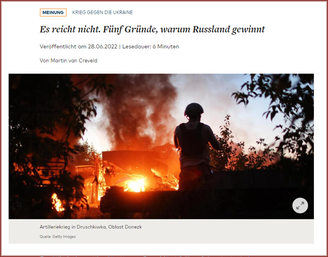 Угледни војни експерт Мартин ван Кревелд је раније предсказивао стратешки неуспех Русије у рату против Украјине. Али – ситуација се променила. Потребна је поновна процена. Његову анализу је са немачког на руски превео Алексеј Чадајев, а са руског на српски Ж. Никчевић.