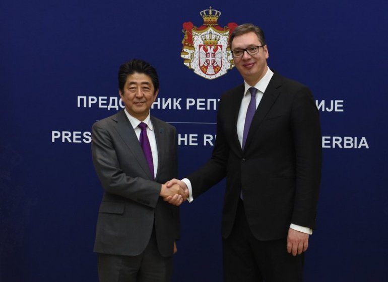 Шинзо Абе је посетио Србију 2018. године, што је била прва посета Београду на тако високом нивоу у последње три деценије, а одликован је на Видовдан ове године орденом Републике Србије на ленти, за изузетне заслуге у развијању и учвршћивању мирољубиве сарадње и пријатељских односа између Србије и Јапана.