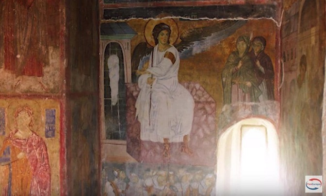 Мироносице на гробу Христовом или Бели анђео, фреска из Милешеве (Фото: Српска телевизија)