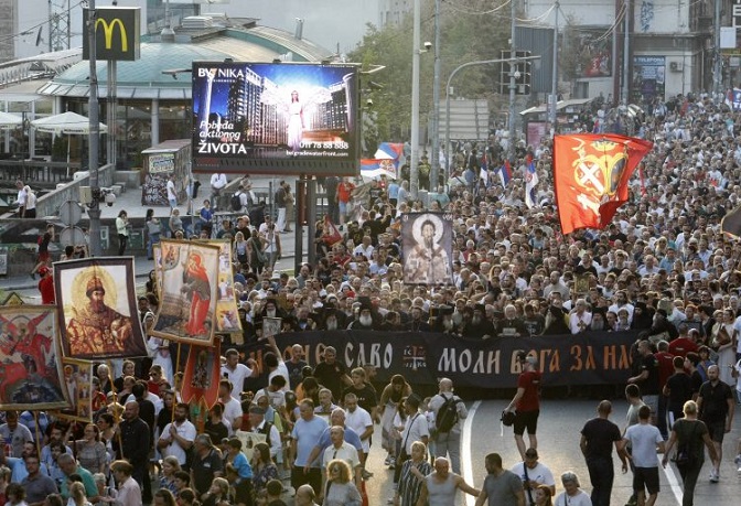 Противници одржавања Европрајда у Београду – иако је власт објавила да је одложен, можда и отказан – окупили су се у 18 часова на скупу „Литија за спас Србије“.