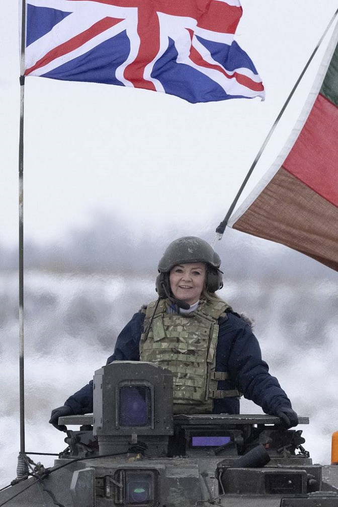 Министарка спољних послова Велике Британије Лиз Трас на енглеском тенку у Естонији (Фото: Сајмон Досон)