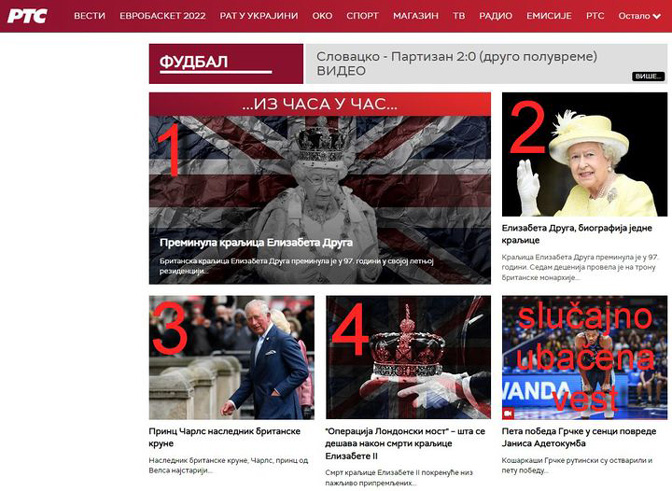 Извештавање РТС-а о смрти енглеске краљице (Извор: Снимак екрана)