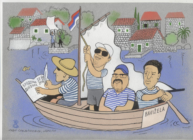 Умјетничко виђење „Бокељске експедиције 2016“ из пера илустратора Лазара Средановића Дикана (из колекције Н. М.)