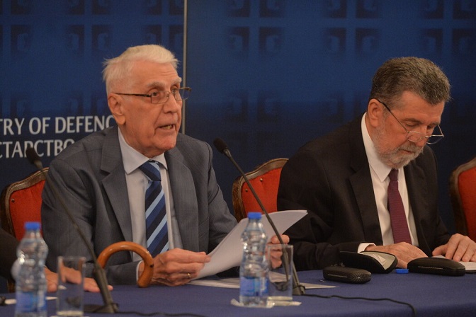 Академици Василије Крестић и Славенко Терзић на представљању Сабраних дела Милорада Екмечића 4. октобра у Дому Војске Србије (Фото: Tanjug/Милош Миливојевић)