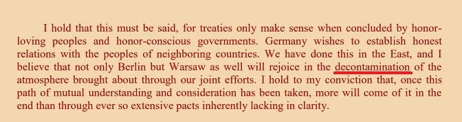 Деконтаминација је 1933. постала једна од кључних речи у Хитлеровим говорима.