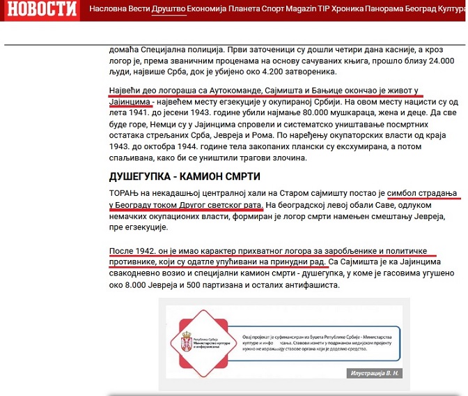 Тешко је разумјети да један од најчитанијих информативних медија у Србији Србе, као далеко најбројније жртве Другог свјетског рата на подручју данашње престонице, ставља на посљедње мјесто, а онда, у самом тексту, аутор низом затајених истина, полуистина и недоречености чини јасну дисторзију Геноцида почињеног над српским народом, стављајући га на маргину у поређењу са страдањем друга два поменута народа.