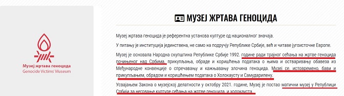 Мада на званичној фејсбук страници пише да је то „Матична музејска установа у Србији у области културе сећања на жртве геноцида почињеног над Србима“ то је само полуистина.