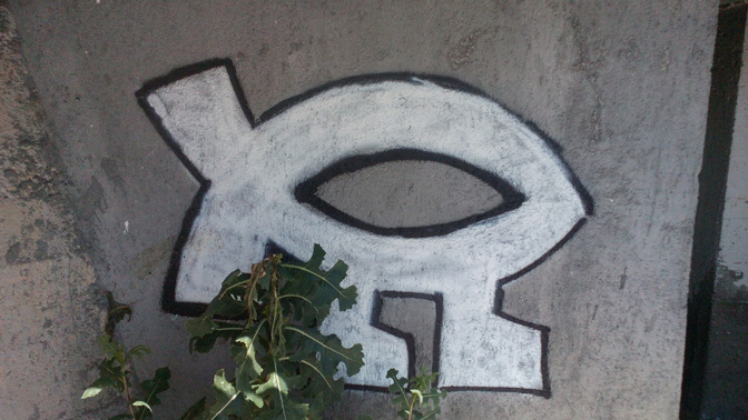 Ко је то добио порив да ненаметљиво али учестало исцртава знак који представља негацију хришћанства? Сигурно не домицилни хришћани, подигнути на риби