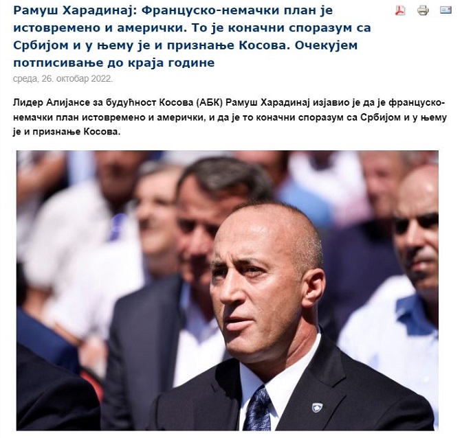 Албански лист пише да је постигнут начелни договор на основу међународног предлога чија је прва тачка да „обе стране потврђују своју приврженост француско-немачком плану“