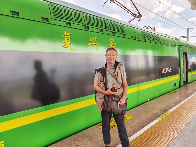 Аутор Финијан Канингем пре укрцавања у нови воз велике брзине Кина–Лаос на линији кроз Златни троугао и горњи ток реке Меконг. Кина данас гради комерцијалне везе тамо где су их САД током Вијетнамског рата уништиле (Фото: ФСК)