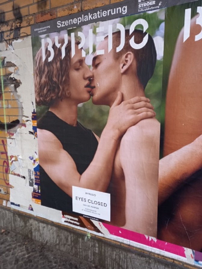 Када прођемо улицом Холцендорф, пут нас води кроз дуги подвожњак. Пешаку се чини као да иде кроз тунел, јер изнад нас пролазе возови и то преко четири железничка моста. Испод тих мостова, по зидовима, налепљене су рекламе за свакојаке производе, или разна обавештења. Од постера запазих доњу фотографију: двојица младића се љубе, и то на начин како то обично чине заљубљени младић и девојка. Јавно се, дакле, пропагира LGBT (лезбејство, педерастија, бисексуалност и трансгендерност) идеологија. То је, ево, једна ствар коју нисам видео по берлинским улицама када сам у забавиште водио своју децу. Укратко, моје унуке и унуци расту у свету у коме нису живели њихови родитељи.