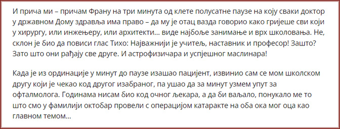 Држава не почива на хирурзима (писао сам, гле!, прије само два броја). Не почива ни на инжењерима, ни на архитектама, него на учитељима, наставницима и професорима – који рађају сва остала знања и звања! Од занатских до универзитетских.