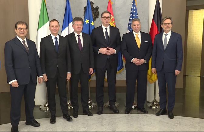 Александар Вучић са дипломатском петорком (Фото: Танјуг/Милош Миливојевић)