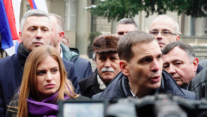 Kако је рекао, иако их је Александар Вучић позвао на консултације о Kосову и Метохији, они су то уз „хуку и буку“ одбили да би само неколико дана касније дошли да протестују испред Председништва у ком нису желели да разговарају, али желе да праве представе за камере.