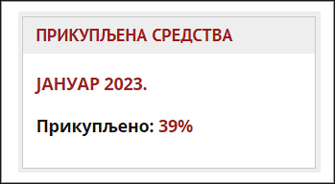 Хвала свима који су несебично приложили новац, текст или нас поменули у молитвама – у јануару 2023. године успели смо да скупимо 39 одсто потребних средстава (исто као у децембру 2022).