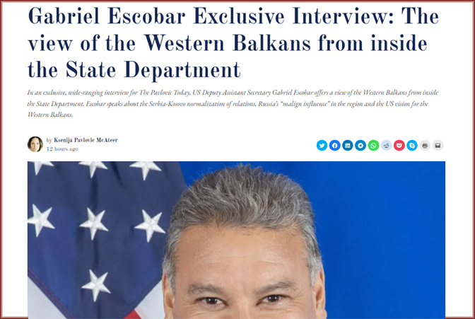 Наша политика је била врло јасна, за нас је међусобно признање Београда и Приштине крајњи циљ, изнео је детаље америчке стратегије заменик помоћника државног секретара САД Габријел Ескобар, те открио неке мање познате детаље француско-немачког плана за КиМ.