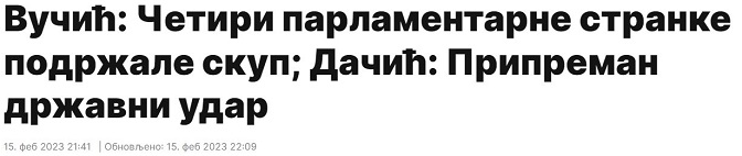 Наслов из Informera од 15. 2. 2023. (Фото: НСПМ)