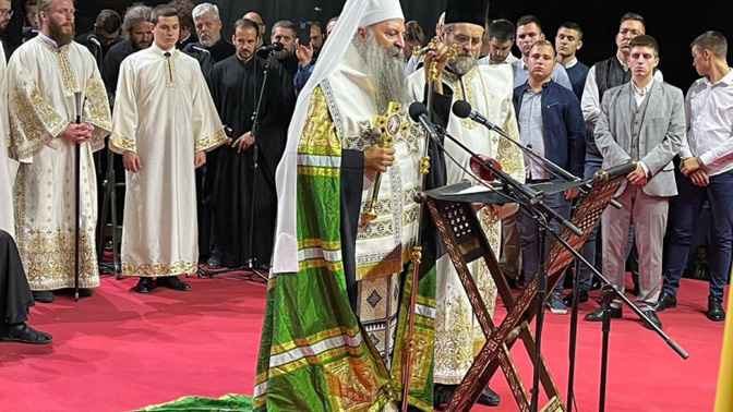 Његова Светост Патријарх српски г. Порфирије служио је 3. марта 2023. године у храму Светог Саве на Врачару молебан Пресветој Богородици са акатистом за наш верни народ на Косову и Метохији, за наше светиње на Косову и Метохији, за наше Косово и Метохију.