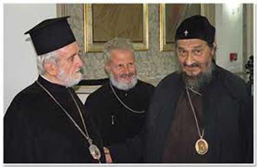 Митрополит Јован (Зизиулас) са српским владикама Игњатијем (Мидићем) и Атанасијем (Јевтићем)