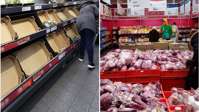 Како примећује Дејли мејл, њихови рафови препуни су свеже хране и руске држављане под владавином Владимира Путина не погађају фотографије празних корпи у суседној земљи.