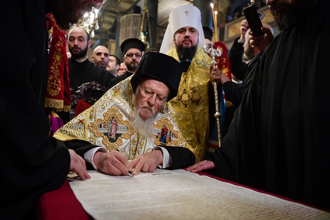 Патријарх Вартоломеј потписује Томос о аутокефалности тзв. ПЦУ (Фото: РТ Балкан)