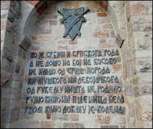 Заветовах се клетви Лазаревој / Мало измењеној и увек нашој / Ко заборави Бог га заборавио / Ко се год дрзнуо да нам завет / И свету земљу отуђи ил прода / Не остало од њега порода