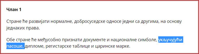 Члан 1. Европског предлога споразума за нормализацију односа Београда и Приштине (Извор)