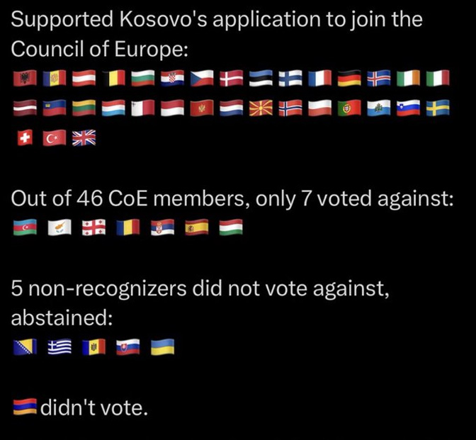 Из региона за пријем тзв. Косова у Савет Европе гласали Црна Гора, Словенија, Северна Македонија, Хрватска и Албанија