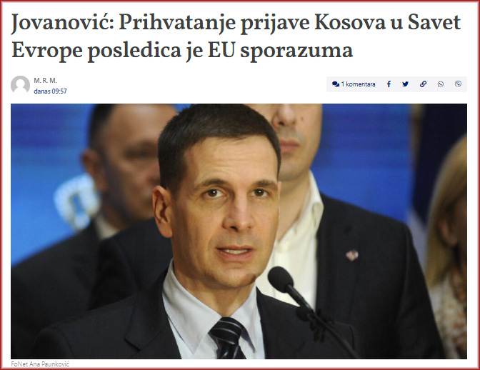 У споразуму из Брисела, у члану 4 наводи се да Србија неће спречавати чланство Косова у било којој међународној организацији.