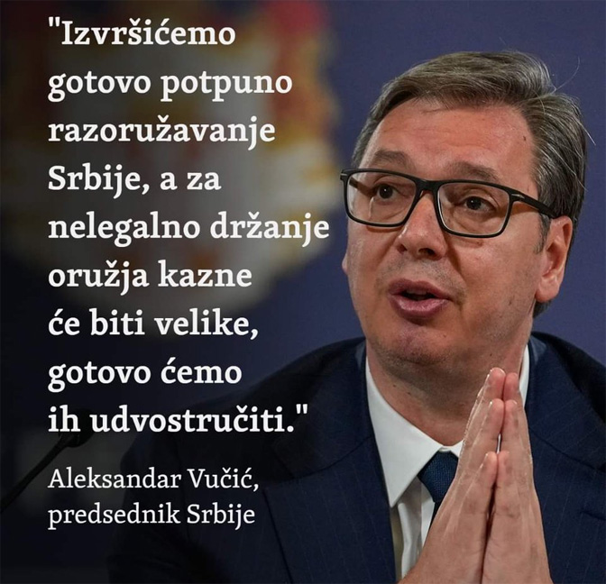 „Када би код нас то било, рекли би да спроводимо цензуру. Али видећемо шта ћемо да урадимо, морао би сваки други твит да се склања. Само хоћу да кажем људима, овај снимак који је приказан је објављен на једној друштвеној мрежи. Дечак или монструм убица је био пратилац овог профила, нека људи погледају па сами просуде. Ово су били пуцњи у Србију. Пали смо, али ћемо се подићи. И желим само да кажем још три речи. Америка је 11. септембра када је била ударена, уз све пропусте својих служби, променила је начин свог живота. Била је уједињена, никога нису оптуживали, већ су се дигли као земља и победили Исламску државу. Исто се десило у Аустралији када је било 28 мртвих, донели су мере и више им се није понављало. Норвешка и Немачка исто, није било политизовања теме.
