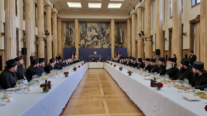 – Уважени господине Председниче, Блажењејши, високопреосвећена и преосвећена браћо архијереји, уважени господо и госпође министри, драга браћо и сестре,