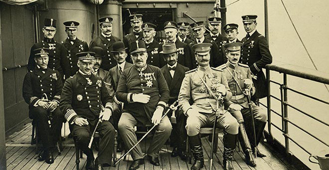 Краљ Никола у униформи аустријског официра (?!), брод „Gаa“, Бока Которска, 1912, из књиге „Pomorska lica Boke Kotorske“ Siniše Lukovića (Књижара Со, 2013)