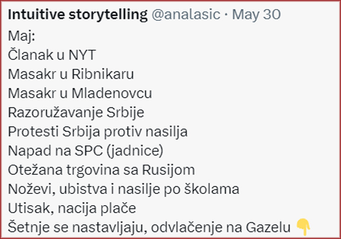 Šetnje se nastavljaju, odvlačenje na Gazelu 👇— Intuitive storytelling (@analasic) May 30, 2023