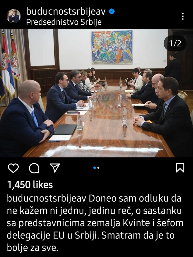 О овој акцији хитно је обавештен шеф државе Александар Вучић, који је био у руској амбасади, где је присуствовао пријему поводом обележавања Дана Русије и по добијању информације се запутио у зграду Председништва.