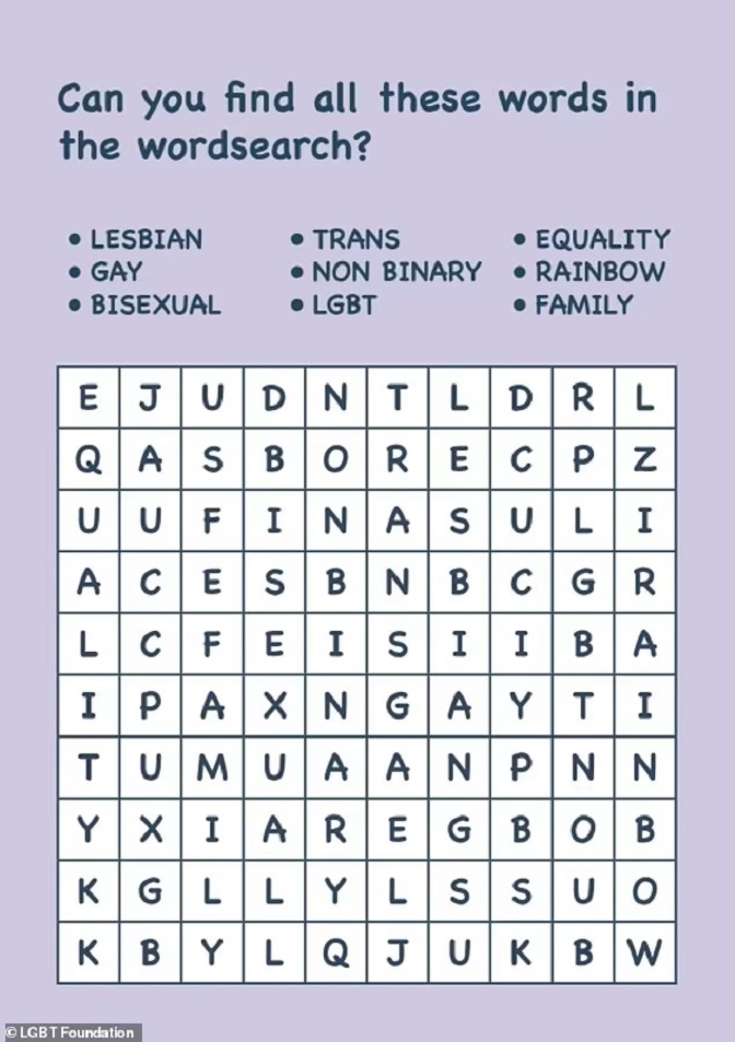 Бојанка у којој дјецу уче „транс терминологији и LGBT заједници“ садржи и укрштеницу за дјецу узраста од 5 до 11 година (Фото: Дејли мејл)