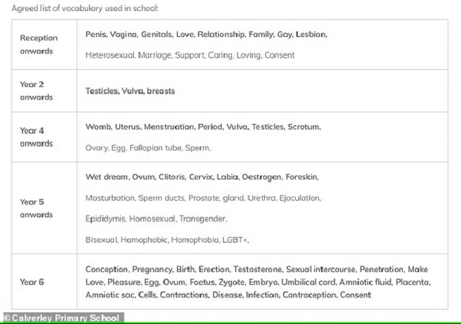 Дејли мејл је дошао у посјед илустрованог наставног материјала који се предаје дјеци широм Уједињеног Краљевства, укључујући сексуални приручник за млађе од тринаест година.