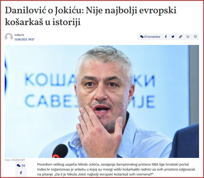 Када је у питању Даниловић, његове ријечи су перфидном манипулацијом изобличене и наопако пренесене, суштина оног што је рекао је да се противи било каквом поређењу играча прошлих епоха и данашње генерације, са чиме ће се сложити мање више сви истински заљубљеници у кошарку, свако вријеме носи своје. Но антисрпски медији, Б92, Данас, Нова и ини, као и неки режимски таблоиди, су искористили ову прилику да кроз малициозан наслов загаде мало српску кошарку и „изокола“ покушају омаловажити достигнуће Николе Јокића. Шта да се ради, медијска багра остаје багра, истрајни укаљати било шта афирмативно за Србе, и успјехе спортиста, па то ти је. Уз то, Даниловић је и предсједник КСС, има одговорност, постоји реална „опасност“ да нација медијским спиновима западне у еуфорију као прије ЕП 2005-е и СП 2019, еуфорију која нас је коштало, ваља порадити да се обузда та еуфорија.