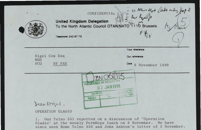 Досијеи британског министарства иностраних послова са којих је недавно скинута ознака тајности открили су узнемирујуће детаље операције Гладио током које су ЦИА, МИ6 и НАТО обучавали и управљали армијом фашистичких паравојних јединица широм Европе с циљем подривања политичких противника.