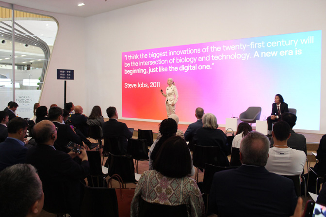 Јелена Беговић на панелу Светског економског форума под називом „Решење је у биологији“, Тјенђину, Кина, 27. јун 2023. (Фото: Министарство науке)