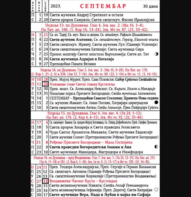 Црквена Нова година / данас (14. септембра) почиње, / на радост, спасење / и ОЧЕ НАШ у свитање