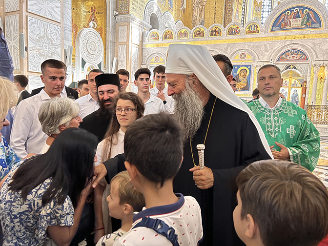 Патријарх са верним народом и децом (Извор: СПЦ)