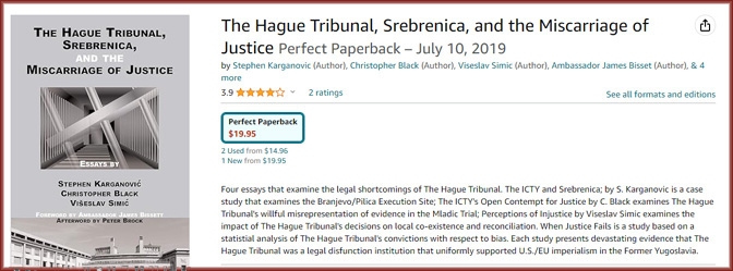 I’m also including a second book he edited, The Hague Tribunal, Srebrenica, and the Miscarriage of Justice, which consists of four essays with an introduction by retired Canadian Ambassador James Bissett. The authors examine the unusual practices of The Hague Tribunal, which is not based on U.S. legal principals. The Hague Tribunal for the Former Yugoslavia was a kangaroo court that advanced the war aims of the US and EU by prosecuting Serbs and ignoring the crimes of the other warring parties.