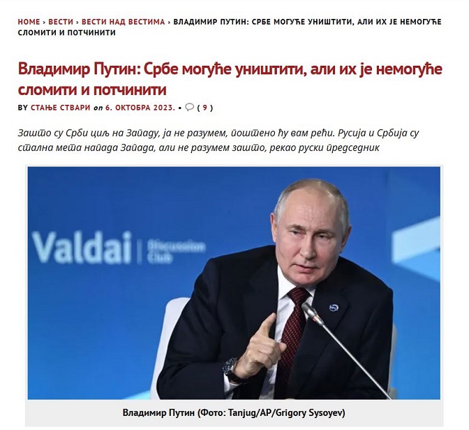 Путин у својој изјави каже да зна да Запад свим силама труди да сломије и уништи Србију а пре свега да је сломије и понизи али не зна зашто. Да ли ми то знамо? Судећи по актуелним дискусијама о броју српских жртава у Јасеновцу и дилеми коју неки намећу да ли је геноцид уопште постојао, као и извору толике мржње према Србима која је генерисала бестијалност каква није виђена у досадашњој људској историји и коју потомци тих починилаца 100 одсто одобравају и настоје да наставе, мало од наc зна.