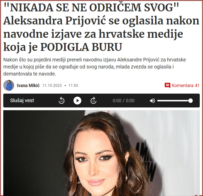 Ових дана насловне стране новина и портала заузима Бренина снајка Александра Пријовић. Оде и Бањска и интервју код Кристијане Аманпур (зачудо, Пинк овај велики успех нашег председника није хтео да прикаже домаћим гледаоцима), одлазе и инвеститори, а све то покрива се разним операцијама одвраћања пажње попут пуштања на слободу оног несрећника, мужа певачице, осуђеног претходно на 40 година. У том погледу, верујем да се чак и прича о броју жртава у Јасеновцу такође смислено користи у исте сврхе тако што се са истог места упућује подршка ка обе групе актера и што се обе подстичу на рат до истребљења.
