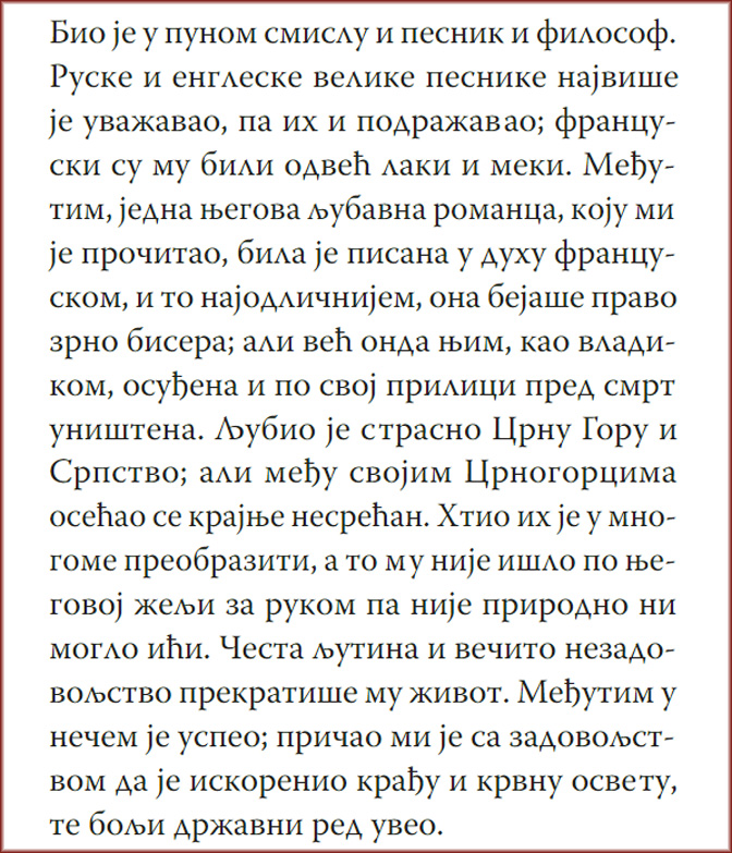 Додајмо, најпознатији је цитат Његошев из ових списа: