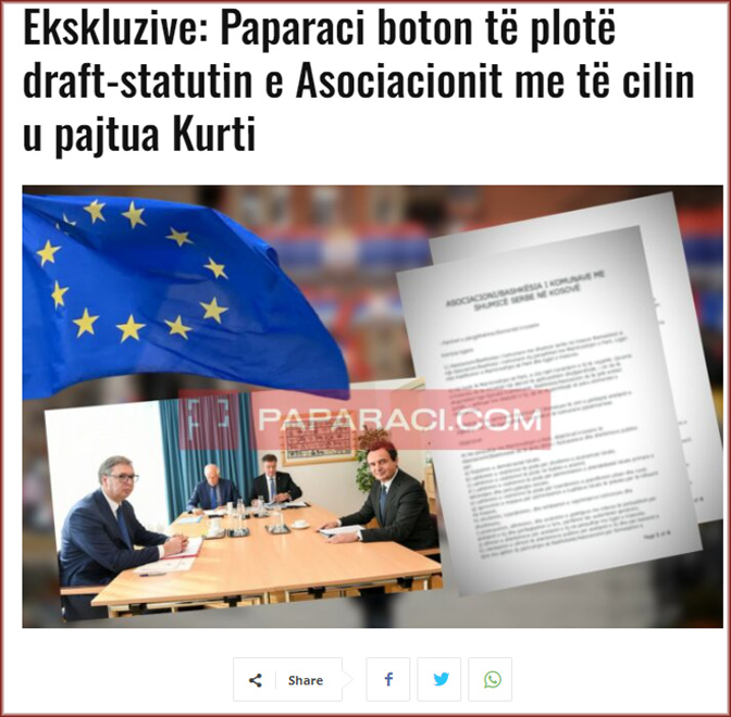 Премијер тзв. Косова Аљбин Курти био је прилично недвосмислен када је, извештавајући посланике у Приштини о последњем састанку у Бриселу, рекао да нацрт статута ЗСО који су представиле међународне дипломате доноси де факто признање ‘Косова’, пренела је „Газета си“.