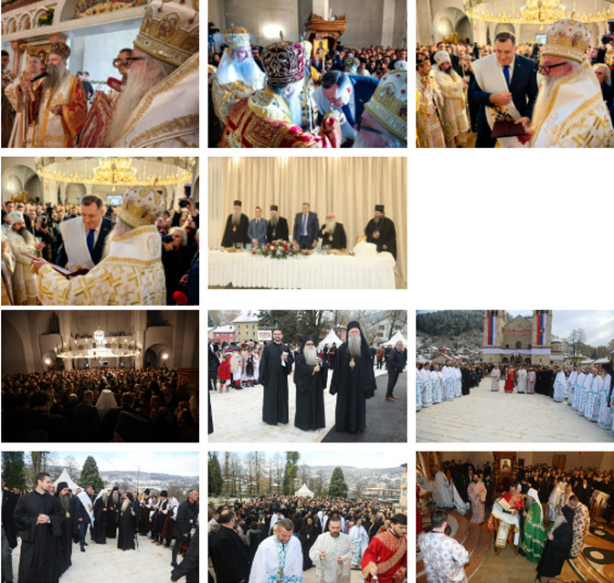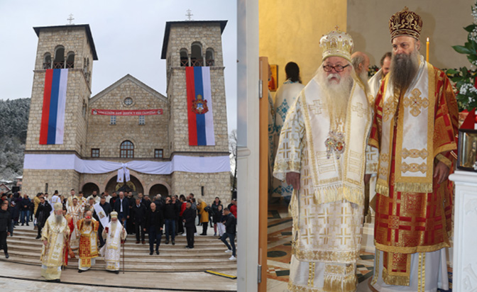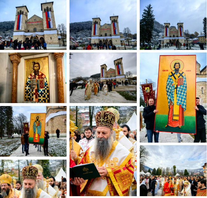 Торжествено литургијско сабрање започело је свечаним чином великог освећења Светосавског храма у Фочи којим је началствовао Његова Светост Патријарх г. Порфирије уз саслужење високопреосвећене и преосвећене господе архијереја: дабробосанског Хризостома, црногорско-приморског Јоаникија, жичког Јустина, диселдорфског и немачког Григорија, славонског Јована, бихаћко-петровачког Сергија, захумско-херцеговачког и приморског Димитрија, будимљанско-никшићког Методија, шабачког Јеротеја и јегарског Нектарија.